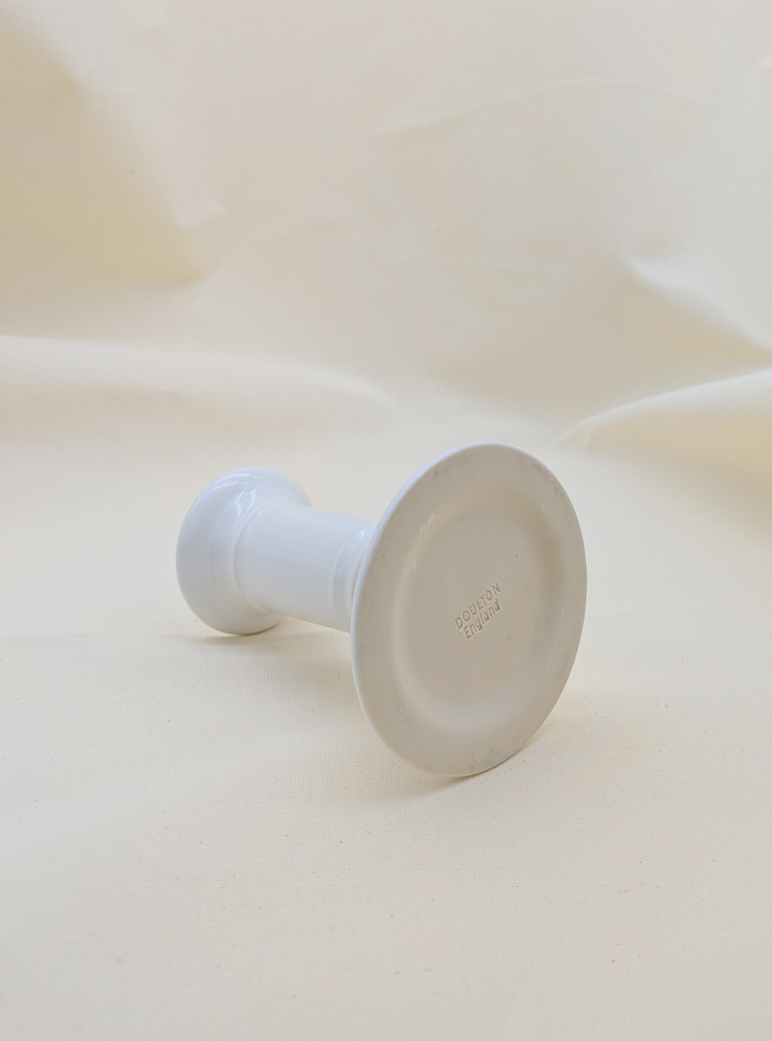 White glazed ceramic candleholder made by Doulton, England.